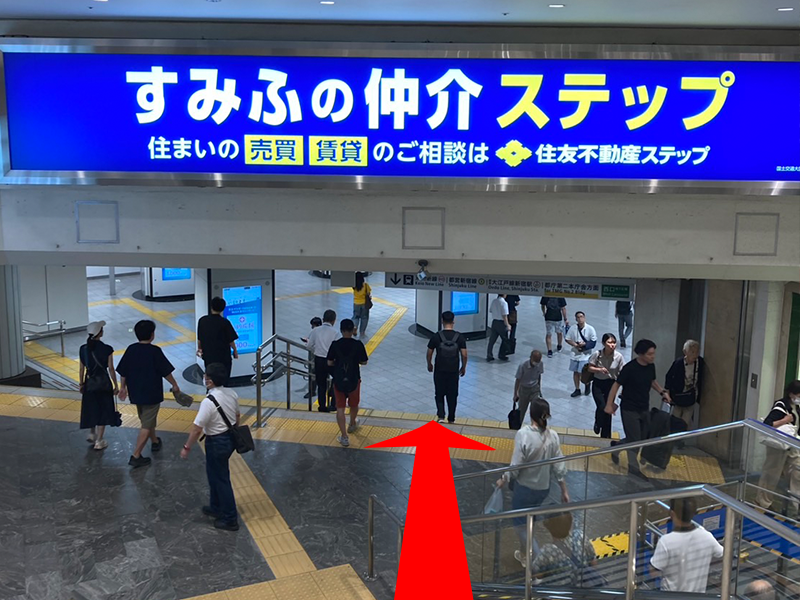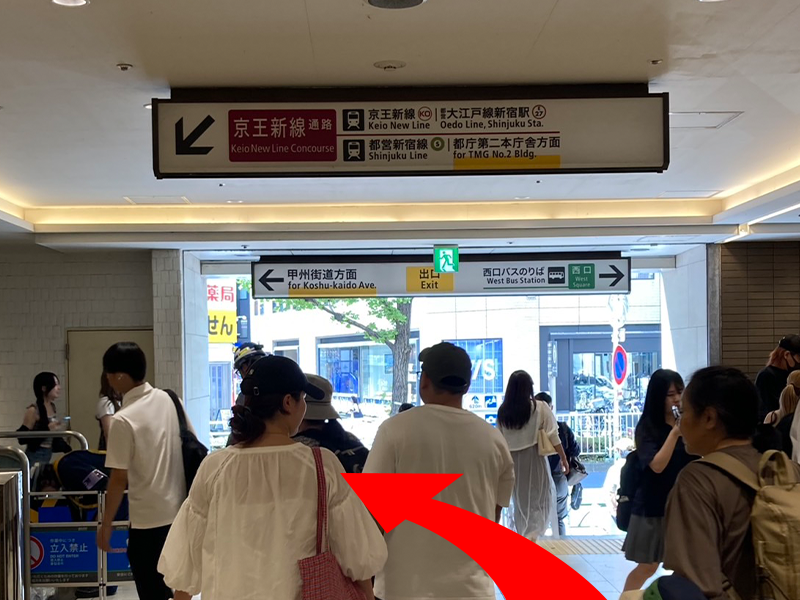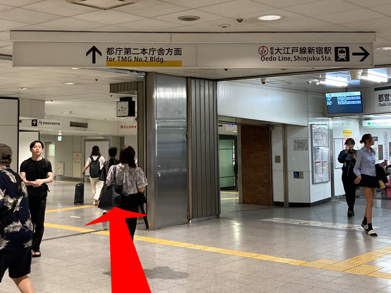 直ぐ右に「京王新線通路・都庁第二本庁舎方面」看板の誘導に従い、同駅構内を移動します。